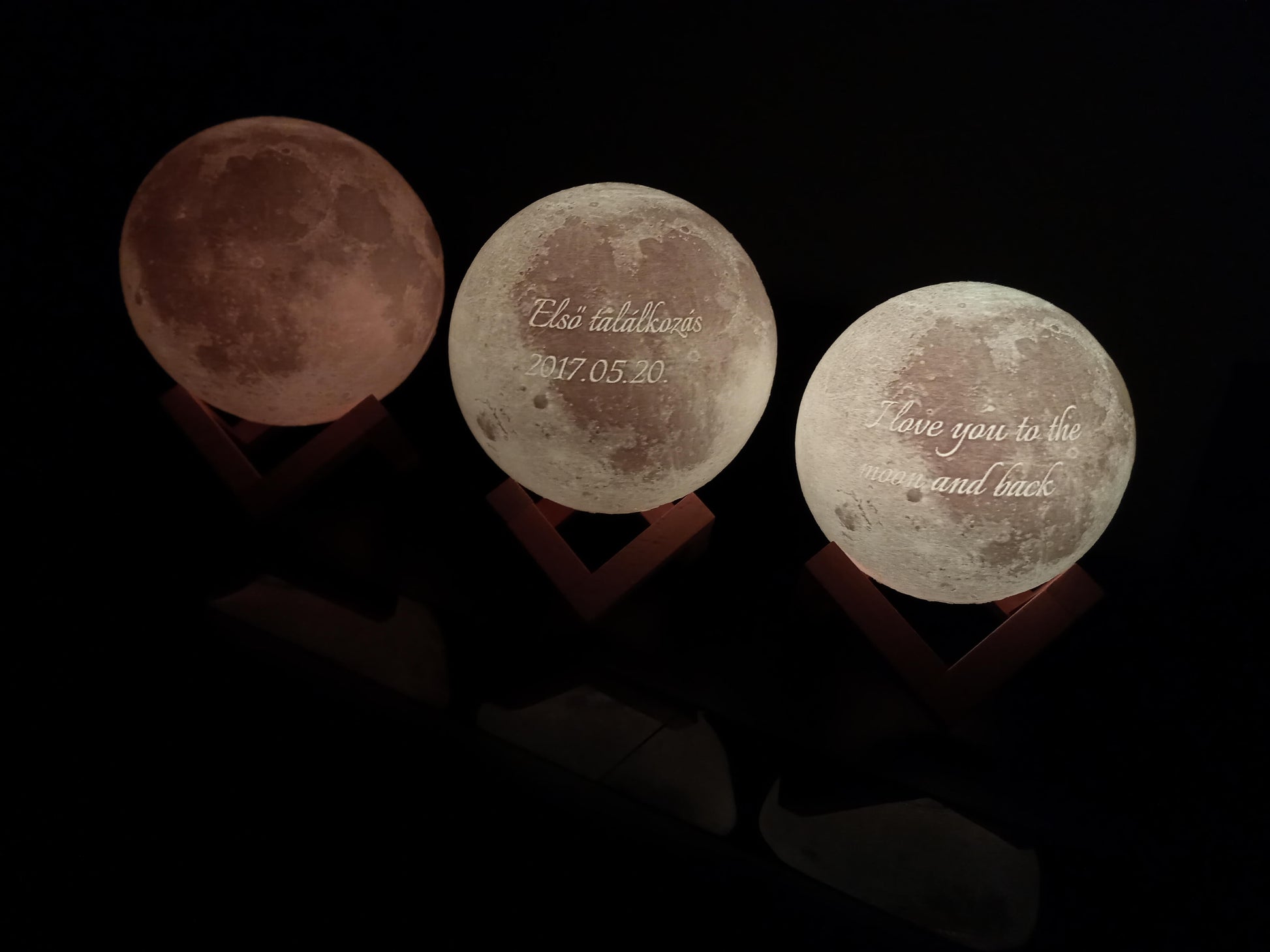 Párom születésnapjára rendeltem meg ezt a csodálatos Holdlámpát. Nem csalódtunk, sőt sokkal szebbet kaptunk mint amire számítottam. A kép nagyon szép, éles, élethű lett a lámpán, ahogy a szöveg is jól olvasható. Bárkinek merem ajánlani akár esküvőre, évfordulóra, születésnapra, emléknek vagy csak úgy. Nem fog csalódni benne. :)